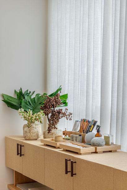 Escritório: Com estilo sofisticado e moderno, a arquiteta atua em projetos residenciais, trazendo ares acolhedores e pessoais, e em projetos comerciais, onde todas as necessidades do empreendimento são avaliadas, alinhando a estética do projeto à identidade da marca.